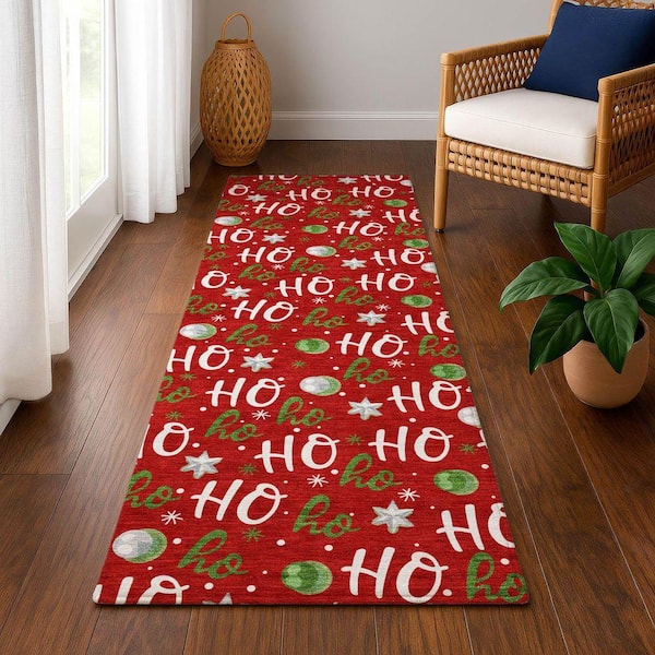 Mayfield Premium Machine Washable Abstract AMF1810 Red 2 ft. 3 in. x 7 ft. 6 in. Runner Rug