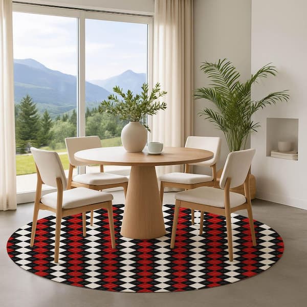 Mayfield Premium Machine Washable Abstract AMF1812 Black 8 ft. x 8 ft. Round Rug