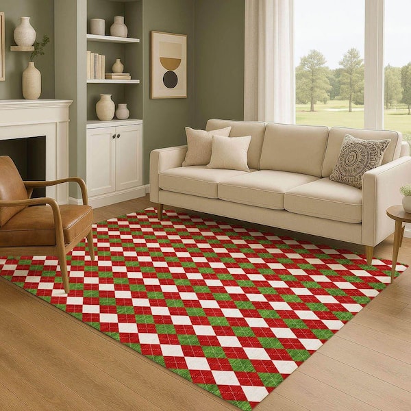 Mayfield Premium Machine Washable Abstract AMF1812 Red 8 ft. x 10 ft. Area Rug