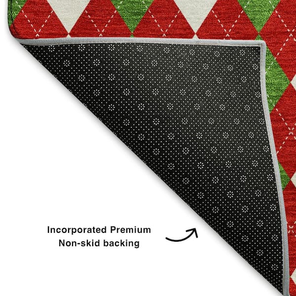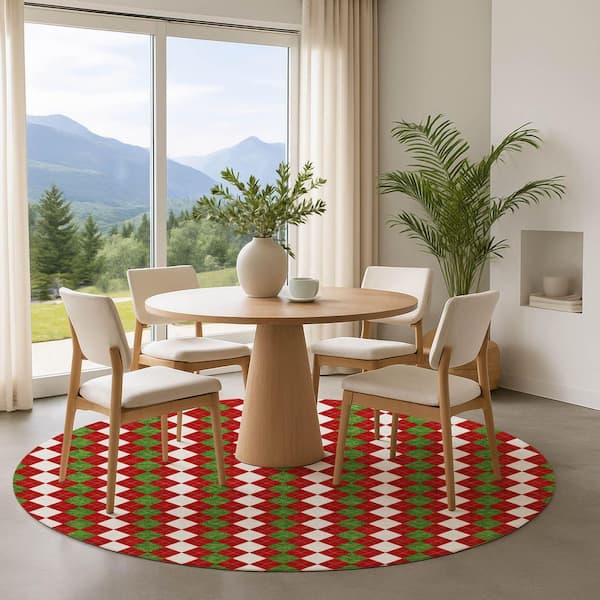 Mayfield Premium Machine Washable Abstract AMF1812 Red 8 ft. x 8 ft. Round Rug