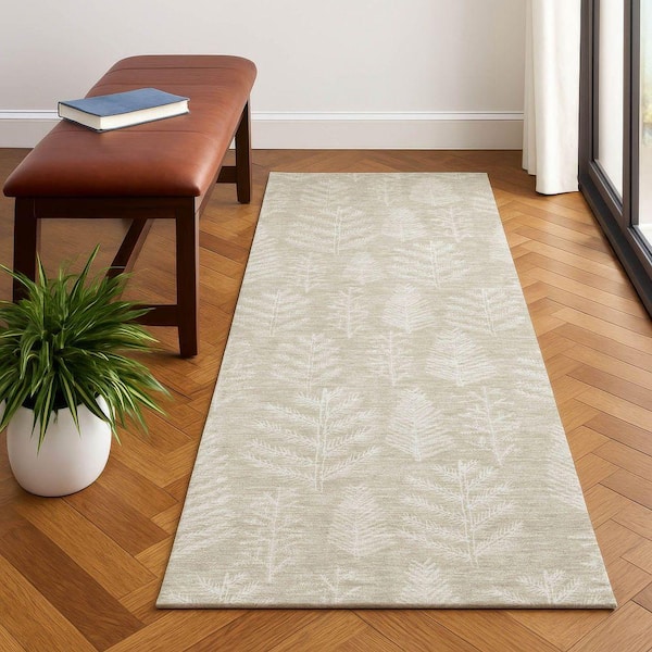 Mayfield Premium Machine Washable Abstract AMF1813 Beige 2 ft. 3 in. x 7 ft. 6 in. Runner Rug