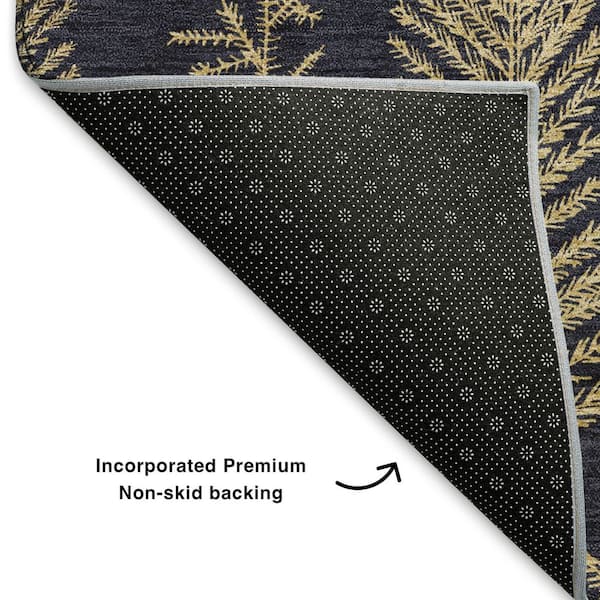 Mayfield Premium Machine Washable Abstract AMF1813 Black 8 ft. x 8 ft. Round Rug