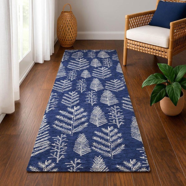 Mayfield Premium Machine Washable Abstract AMF1813 Navy 2 ft. 3 in. x 7 ft. 6 in. Runner Rug