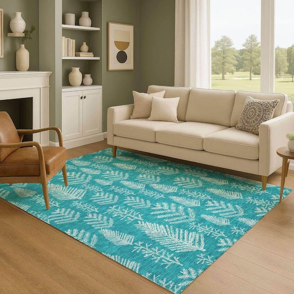 Mayfield Premium Machine Washable Abstract AMF1813 Teal 3 ft. x 4 ft. Area Rug