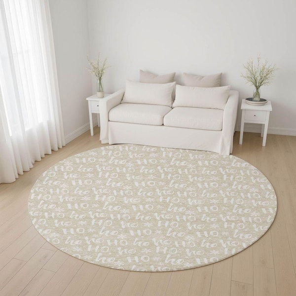 Mayfield Premium Machine Washable Abstract AMF1814 Beige 8 ft. x 8 ft. Round Rug