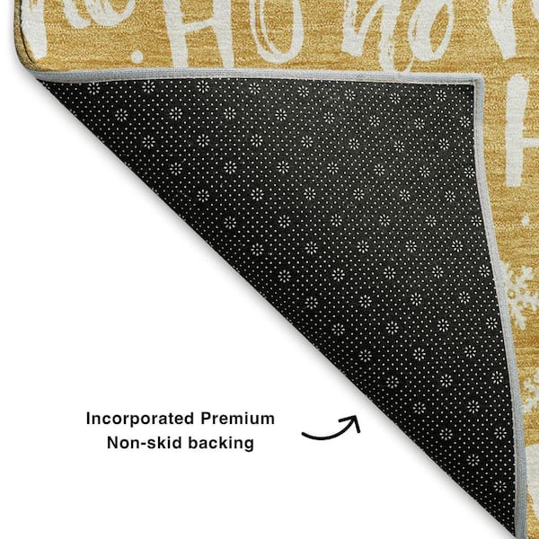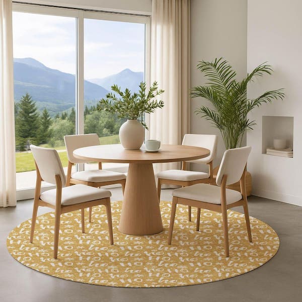Mayfield Premium Machine Washable Abstract AMF1814 Gold 8 ft. x 8 ft. Round Rug