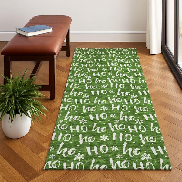 Mayfield Premium Machine Washable Abstract AMF1814 Green 2 ft. 3 in. x 7 ft. 6 in. Runner Rug