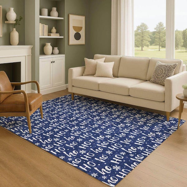 Mayfield Premium Machine Washable Abstract AMF1814 Navy 9 ft. x 12 ft. Area Rug