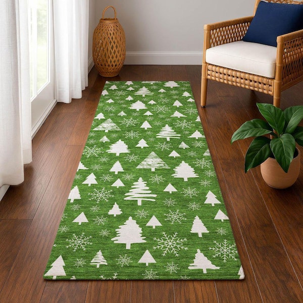 Mayfield Premium Machine Washable Abstract AMF1815 Emerald 2 ft. 3 in. x 7 ft. 6 in. Runner Rug