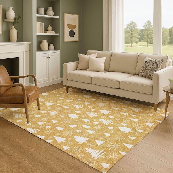 Mayfield Premium Machine Washable Abstract AMF1815 Gold 5 ft. x 7 ft. 6 in. Area Rug