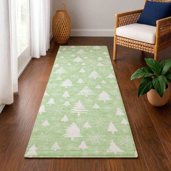 Mayfield Premium Machine Washable Abstract AMF1815 Mint 2 ft. 3 in. x 7 ft. 6 in. Runner Rug