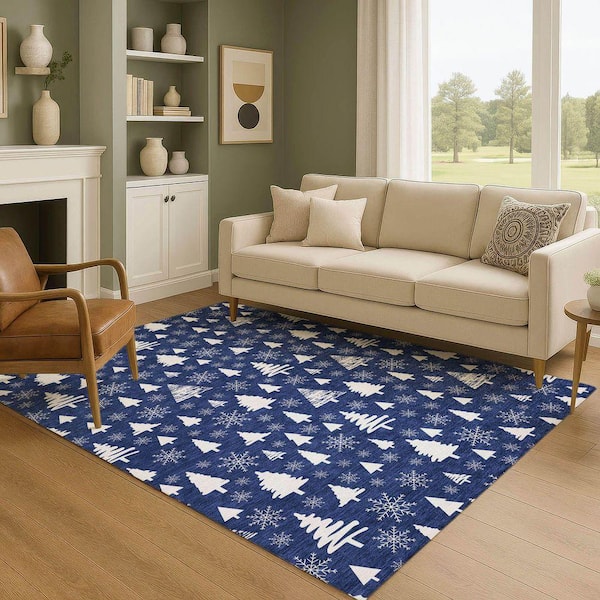 Mayfield Premium Machine Washable Abstract AMF1815 Navy 3 ft. x 5 ft. Area Rug
