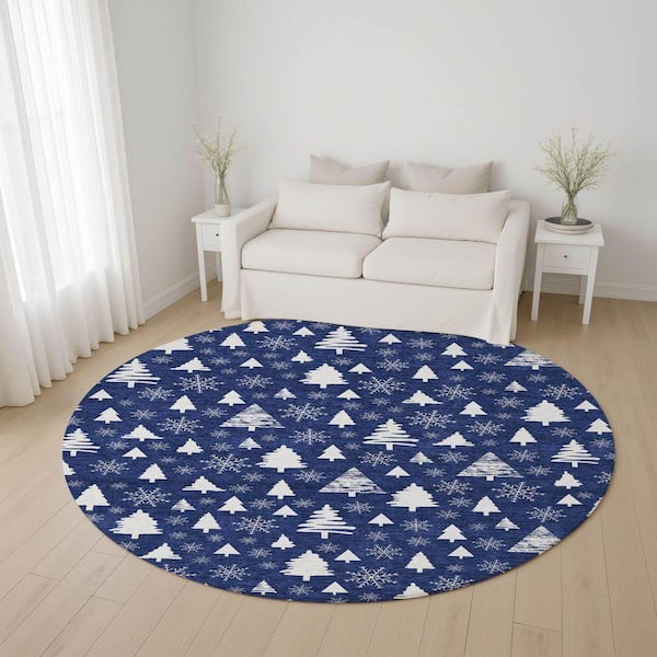 Mayfield Premium Machine Washable Abstract AMF1815 Navy 8 ft. x 8 ft. Round Rug