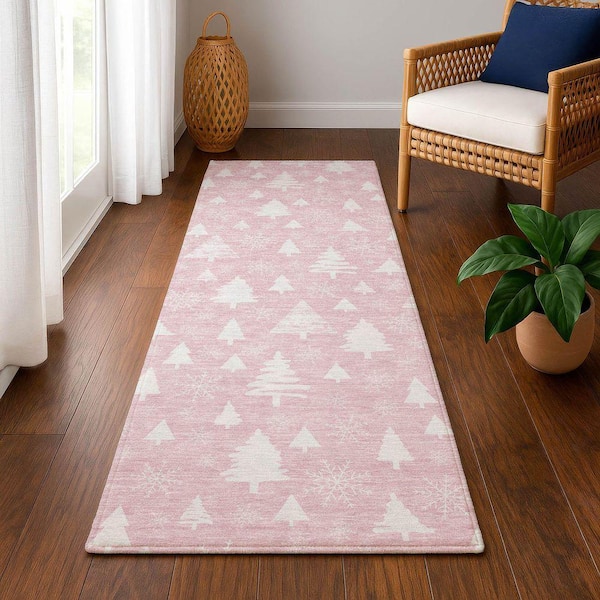 Mayfield Premium Machine Washable Abstract AMF1815 Pink 2 ft. 3 in. x 7 ft. 6 in. Runner Rug