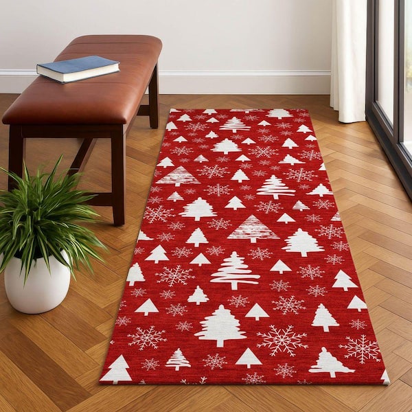 Mayfield Premium Machine Washable Abstract AMF1815 Red 2 ft. 3 in. x 7 ft. 6 in. Runner Rug