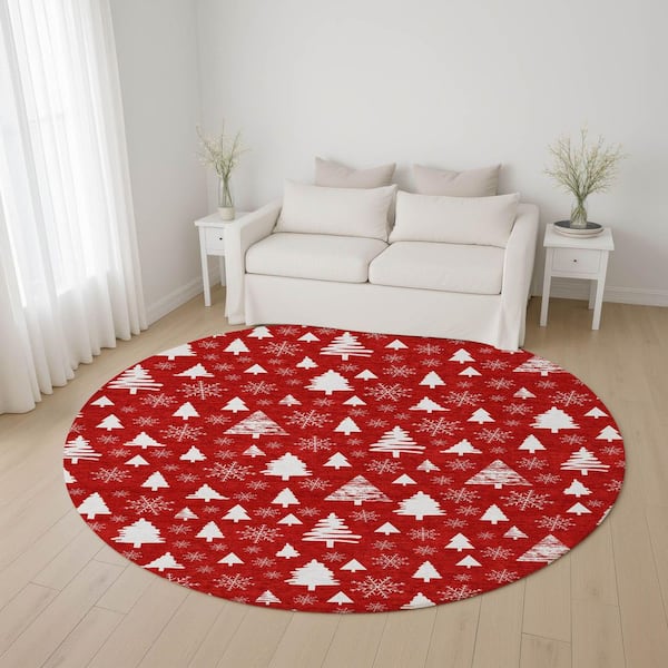 Mayfield Premium Machine Washable Abstract AMF1815 Red 8 ft. x 8 ft. Round Rug