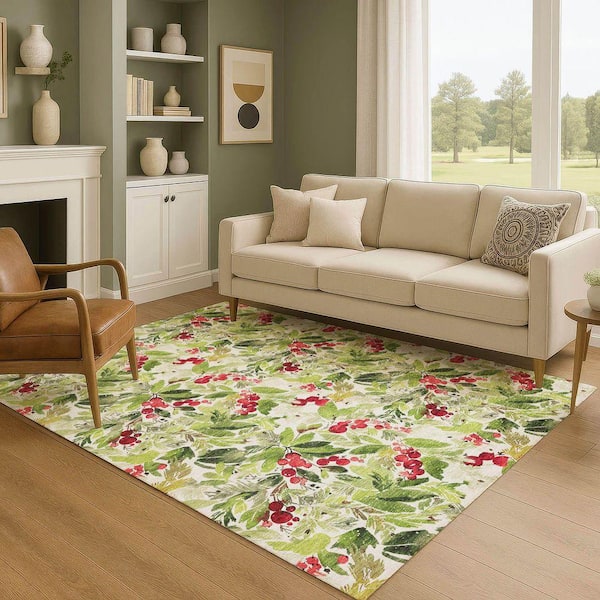 Mayfield Premium Machine Washable Abstract AMF1816 Aloe 10 ft. x 14 ft. Area Rug