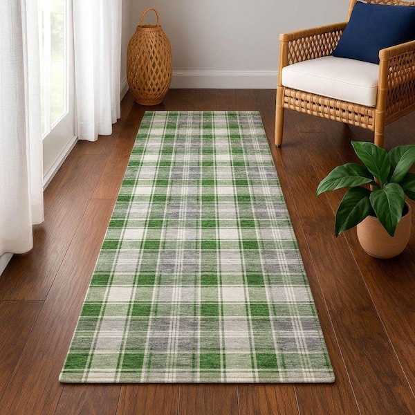 Mayfield Premium Machine Washable Abstract AMF1817 Green 2 ft. 3 in. x 7 ft. 6 in. Runner Rug