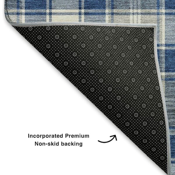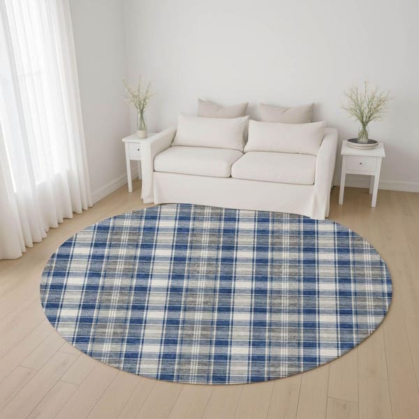 Mayfield Premium Machine Washable Abstract AMF1817 Navy 8 ft. x 8 ft. Round Rug