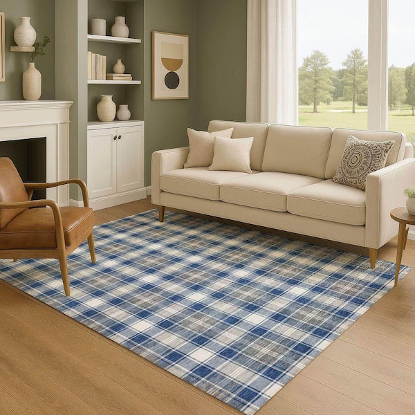Mayfield Premium Machine Washable Abstract AMF1817 Navy 9 ft. x 12 ft. Area Rug