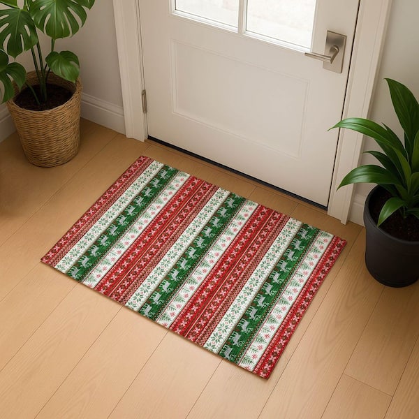 Mayfield Premium Machine Washable Abstract AMF1818 Red 2 ft. x 3 ft. Area Rug
