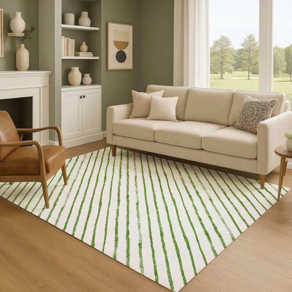 Mayfield Premium Machine Washable Abstract AMF1819 Green 8 ft. x 10 ft. Area Rug