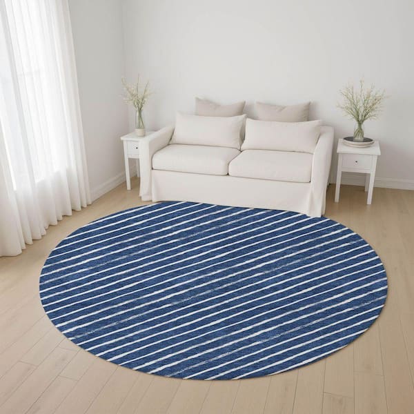 Mayfield Premium Machine Washable Abstract AMF1819 Navy 8 ft. x 8 ft. Round Rug