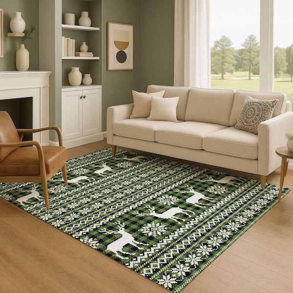 Mayfield Premium Machine Washable Abstract AMF1820 Cactus 5 ft. x 7 ft. 6 in. Area Rug
