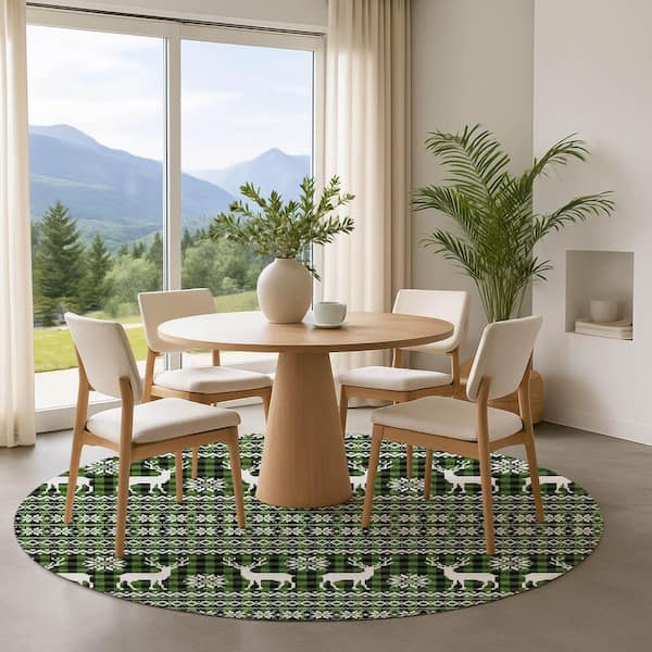 Mayfield Premium Machine Washable Abstract AMF1820 Cactus 8 ft. x 8 ft. Round Rug