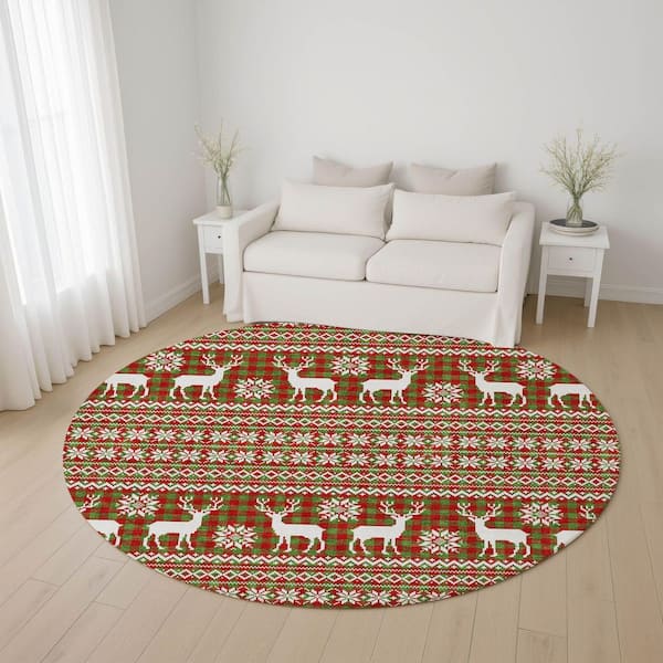 Mayfield Premium Machine Washable Abstract AMF1820 Fern 8 ft. x 8 ft. Round Rug
