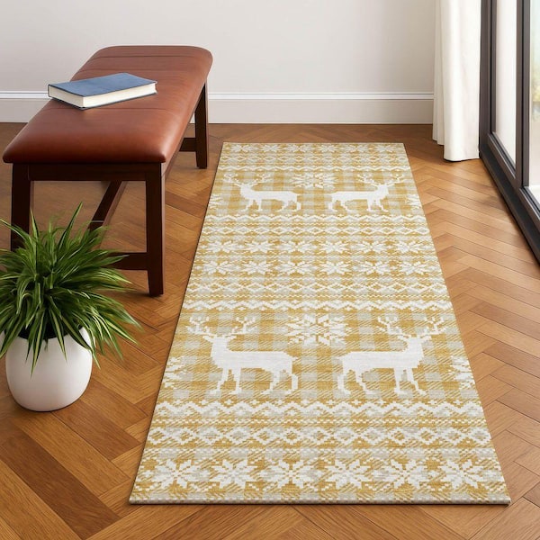 Mayfield Premium Machine Washable Abstract AMF1820 Gold 2 ft. 3 in. x 7 ft. 6 in. Runner Rug
