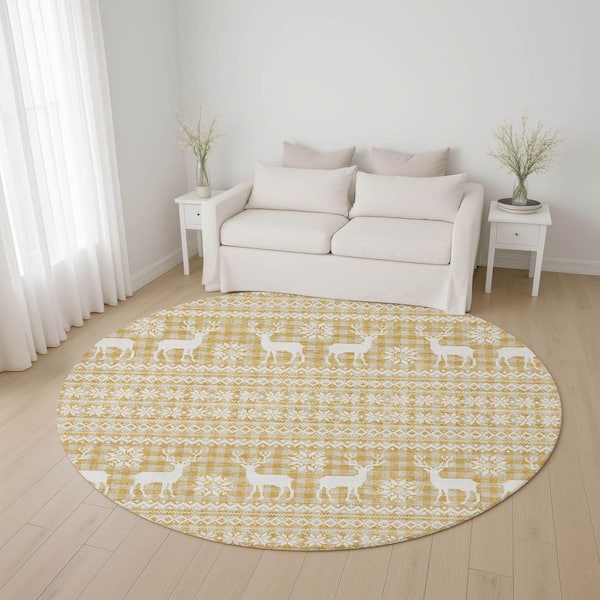 Mayfield Premium Machine Washable Abstract AMF1820 Gold 8 ft. x 8 ft. Round Rug