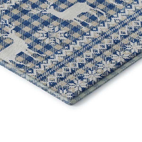 Mayfield Premium Machine Washable Abstract AMF1820 Navy 5 ft. x 7 ft. 6 in. Area Rug