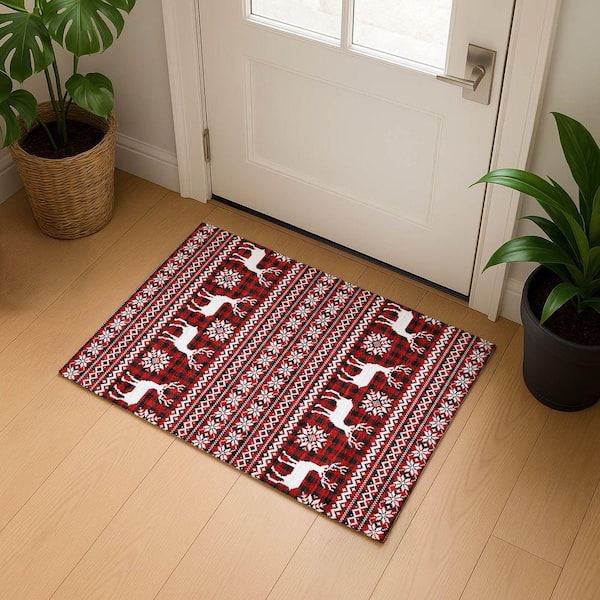 Mayfield Premium Machine Washable Abstract AMF1820 Red 2 ft. x 3 ft. Area Rug
