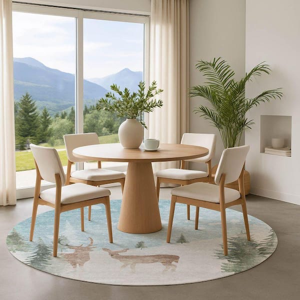 Mayfield Premium Machine Washable Abstract AMF1821 Sky 8 ft. x 8 ft. Round Rug