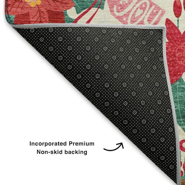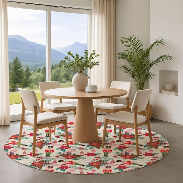 Mayfield Premium Machine Washable Abstract AMF1822 Ivory 8 ft. x 8 ft. Round Rug