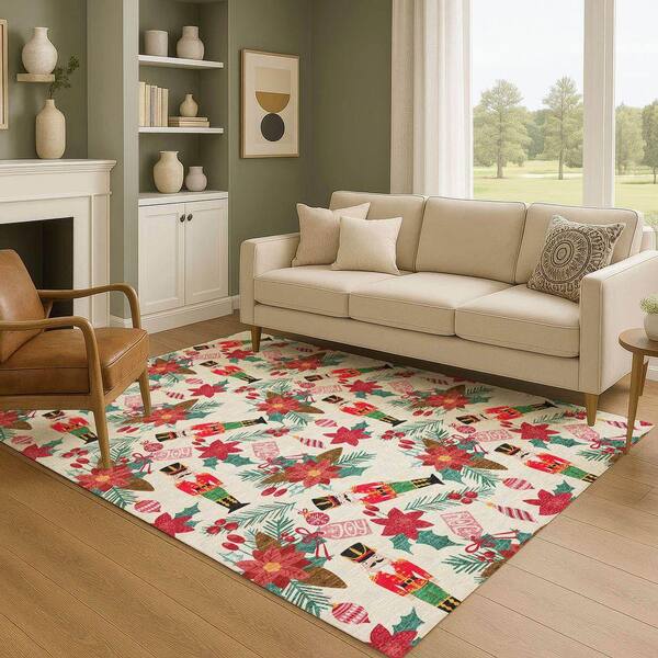 Mayfield Premium Machine Washable Abstract AMF1822 Ivory 9 ft. x 12 ft. Area Rug