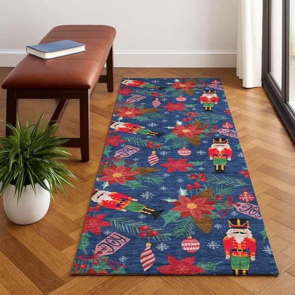 Mayfield Premium Machine Washable Abstract AMF1822 Navy 2 ft. 3 in. x 7 ft. 6 in. Runner Rug