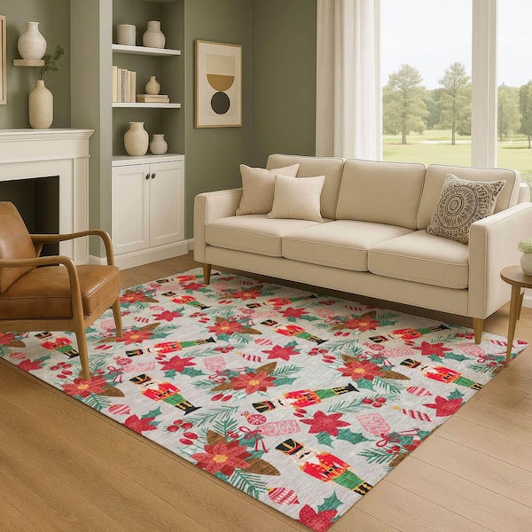 Mayfield Premium Machine Washable Abstract AMF1822 Silver 3 ft. x 4 ft. Area Rug