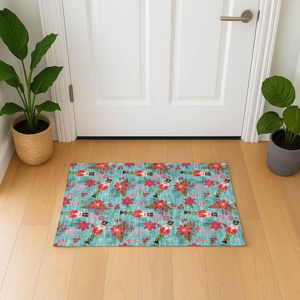 Mayfield Premium Machine Washable Abstract AMF1822 Teal 2 ft. x 3 ft. Area Rug