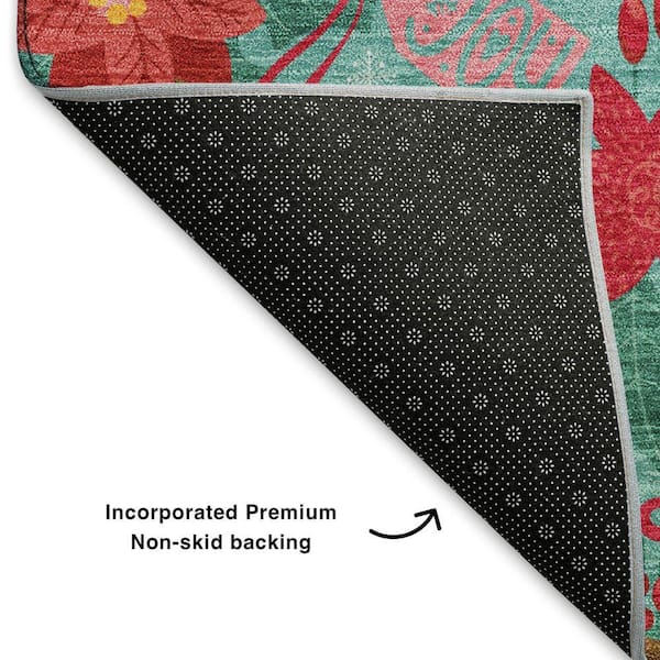 Mayfield Premium Machine Washable Abstract AMF1822 Teal 8 ft. x 8 ft. Round Rug