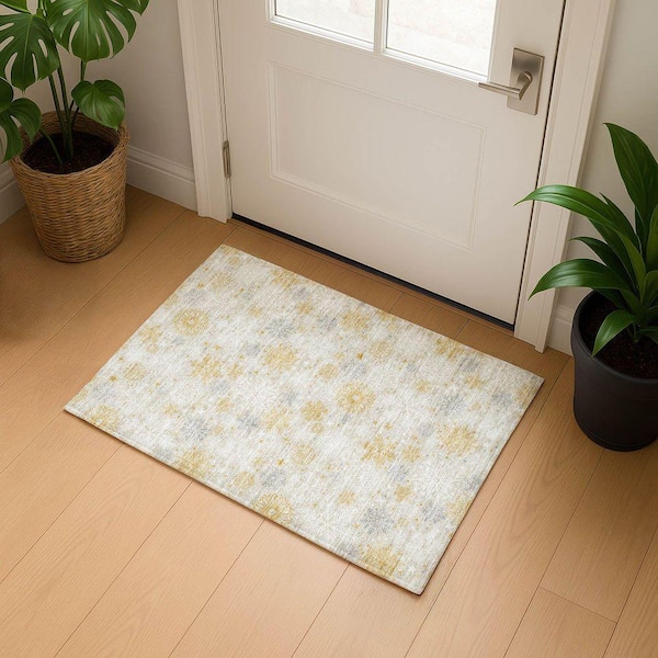 Mayfield Premium Machine Washable Abstract AMF1823 Beige 2 ft. x 3 ft. Area Rug