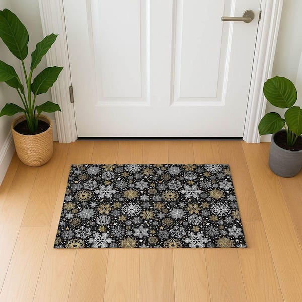 Mayfield Premium Machine Washable Abstract AMF1823 Black 2 ft. x 3 ft. Area Rug