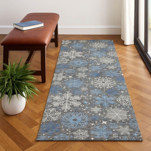 Mayfield Premium Machine Washable Abstract AMF1823 Gray 2 ft. 3 in. x 7 ft. 6 in. Runner Rug