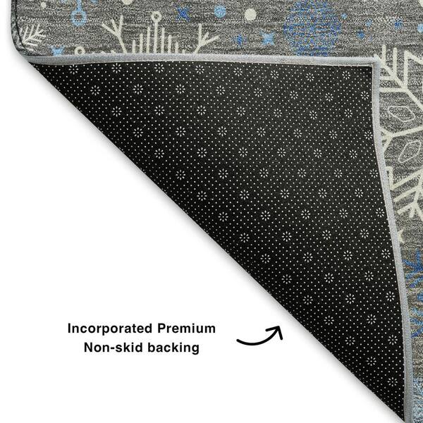 Mayfield Premium Machine Washable Abstract AMF1823 Gray 8 ft. x 8 ft. Round Rug