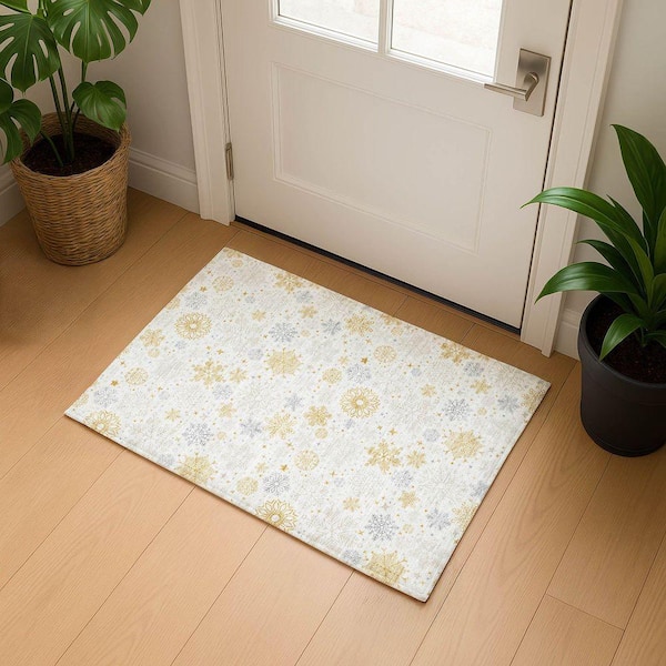Mayfield Premium Machine Washable Abstract AMF1823 Ivory 2 ft. x 3 ft. Area Rug
