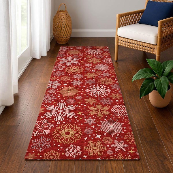 Mayfield Premium Machine Washable Abstract AMF1823 Red 2 ft. 3 in. x 7 ft. 6 in. Runner Rug