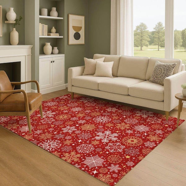 Mayfield Premium Machine Washable Abstract AMF1823 Red 3 ft. x 5 ft. Area Rug