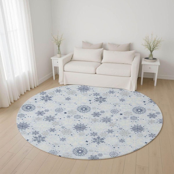 Mayfield Premium Machine Washable Abstract AMF1823 Sky 8 ft. x 8 ft. Round Rug