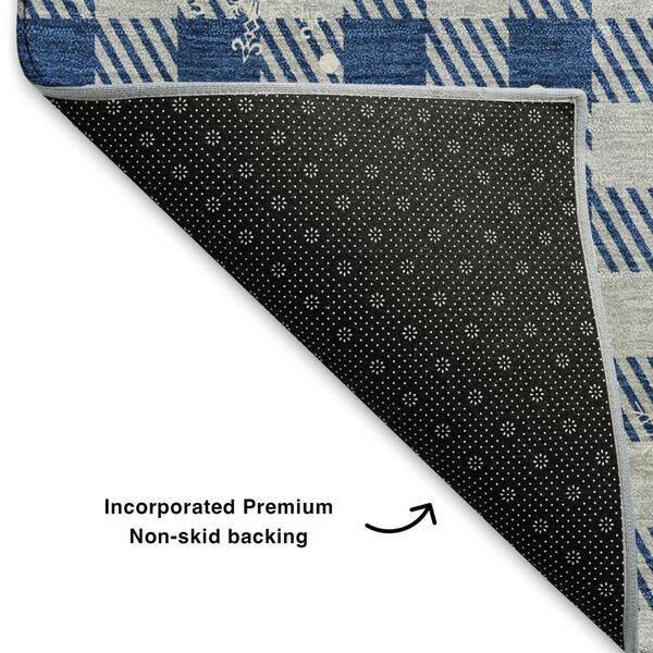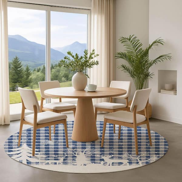Mayfield Premium Machine Washable Abstract AMF1824 Blue 8 ft. x 8 ft. Round Rug